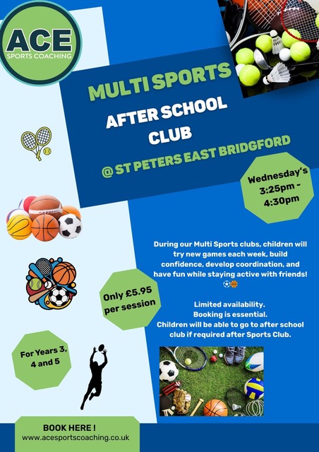 Children will work on key skills to improve their confidence, coordination, fitness and understanding of the sport. Each week there will be a different sport to focus on including basketball, tennis, football and cricket. Sign up with ACE here for spring term 1.
